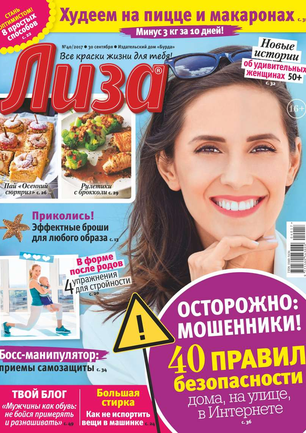 Самый популярный в России еженедельный журнал для молодых женщин «Лиза» стал еще интереснее, еще привлекательнее для читательниц. Теперь больше знаменитостей на страницах любимого журнала! Фитнес со звездой и звездный макияж, уроки стиля и самые горячие новости из жизни кумиров. А еще — модный шопинг, актуальная мода, новинки косметики и великолепные идеи для дома. Романтические истории о настоящей любви и рассказы читательниц о разных жизненных ситуациях. Аспекты психологии, секреты успешных отношений с окружающими и искусство сохранения любви.